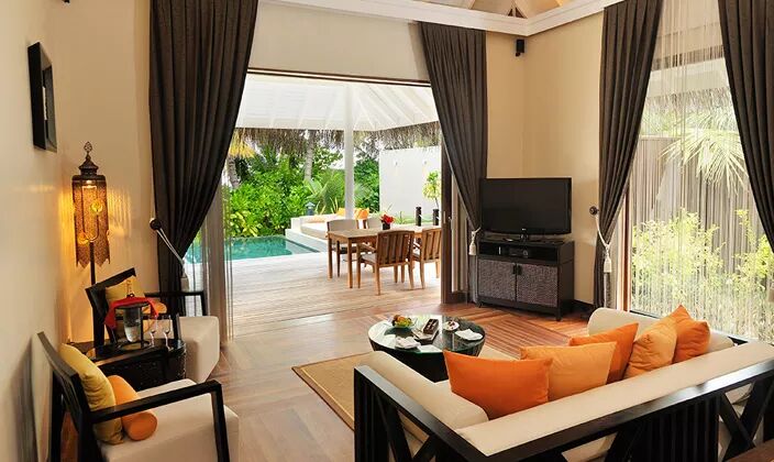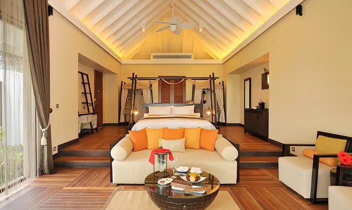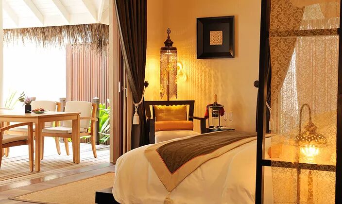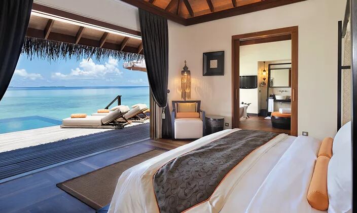 这幢别墅拥有独立的生活区,极尽奢华。日落海洋套房直通泻湖。