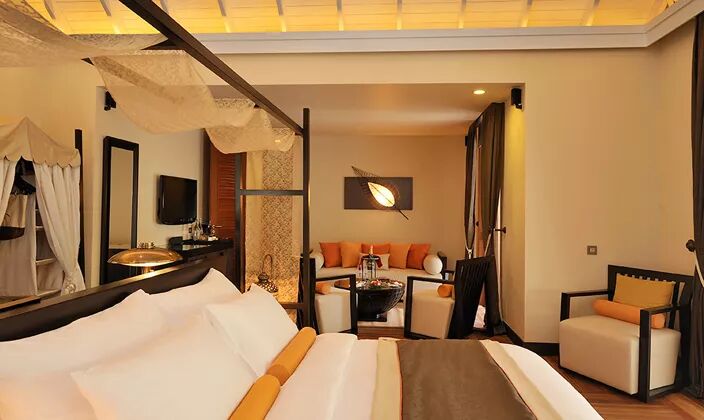 日落海滩套房是互连住宿的,别墅很大,足以使一家人住在同一个套房里。