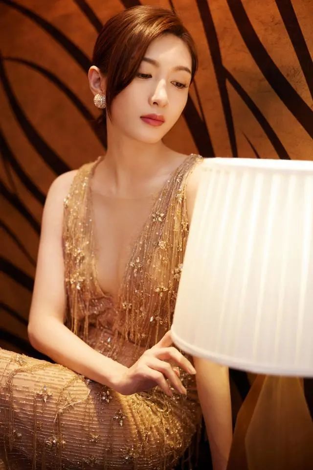 像江疏影这样选一身香槟色的裙子,既比穿基础色新颖时髦,同时也没有什么夸张的感觉。另外,香槟色还带着优雅贵气感,对肤色条件要求也不严苛,普通人也能将其诠释的很好。
