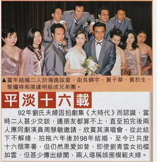 1998年娱乐新闻里刘青云结婚时候的兄弟伴郎团,黄子华(左二上)