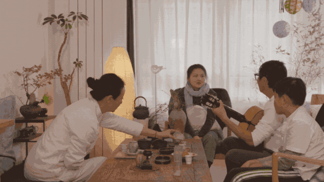 家里最核心的地方就是客厅了。没有电视机,只有一个茶席,一家人可以围坐着,喝茶聊天。我能想的最美好的场景就是,我在那里织毛衣,妹妹在那涂涂画画,哥哥在那玩,姐姐看书。爸爸一会儿看我们,一会儿看看孩子,一会儿看看窗外,他说漫山遍野都是今天。
