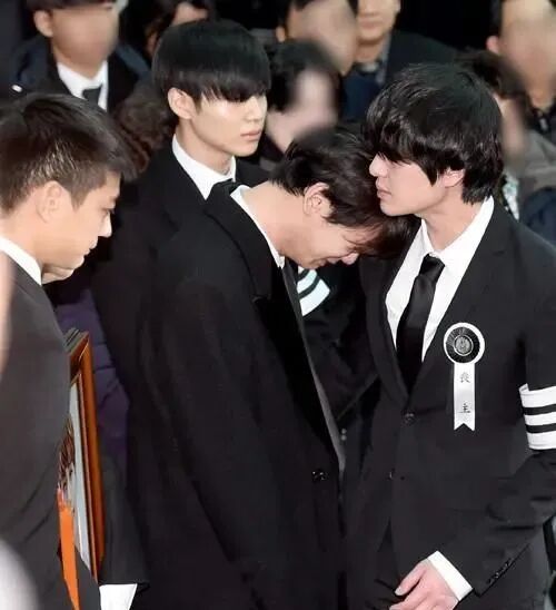 而在葬礼上,SHINee家的其他队友,全都哭成了泪人。