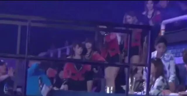 SHINee更直接站了起来,想把位置让给女士们,却遭到了主办方的明令禁止,他们干脆不坐了,跟T-ara一起“罚站”。