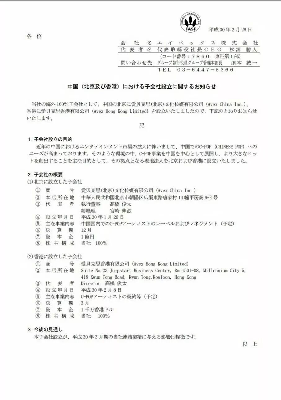 可以看见,这次不仅在北京,还在香港设立了子公司,目的是用于开发中国内地庞大的市场,并且围绕C-POP开展活动。(C-POP一词源于日本的J-POP,意思是日本流行音乐,后来有了K-POP,韩国流行音乐,现在则用C-POP一词代表华语音乐在日本普及)。