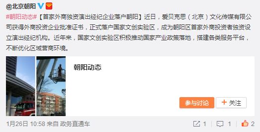 据了解,爱贝克思(以下简称avex)成为内地首家外商独资演出经纪企业,之所以再次进入中国内地还跟北京朝阳区的这项政策有关,国家文创试验区为积极推动国家产业政策落地,avex成为重点引进企业促成了这次重新返华。下面划重点:爱贝克思(北京)文化传媒有限公司设立后,avex将可以独立引进旗下艺人到中国国内演出,增进中日文化艺术的交流,旗下滨崎步、AAA、lol、幸田来未、大冢爱及小事乐团 及 关系密切的LDH(民工系)艺人及团体EXILE、E-girls以及在大陆大人气的Generations等团体都有望更多地来到内地举办演唱会。