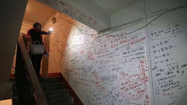 成都金牛区营门口外一栋老小区楼道的墙,最近成了网红话题。
