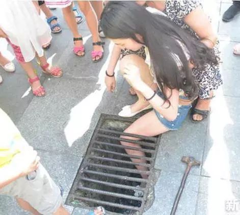 之前,有位姑娘走路时一直低头玩手机,没注意前方的下水道口坏了,直接卡进了下水道的栏杆里……