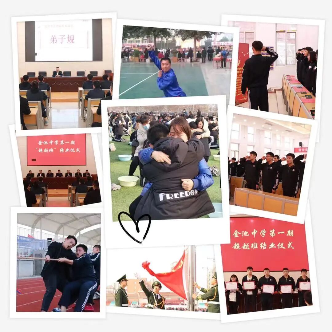 从学校性质来看,金池中学有“五全”,即全寄宿、全封闭、全跟踪、全发展、全优秀。全寄宿是指没有一个走读生:全封闭是指封闭校园、封闭老师和封闭学生,封闭校园和学生的意义除了保障学生人身安全外,更重要的是杜绝社会不良现象侵袭校园,影响学生的身心健康,封闭老师是指老师要住校;全跟踪是指老师、教宫、生活老师24小时全天候监护学生;全发展是让每个学生“德、智、体、能”全面发展,并且不落下一个学生;全优秀是让每个学生品学兼优,成为有生存力、竞争力、创造力、领导力的贤人、能人和高人。