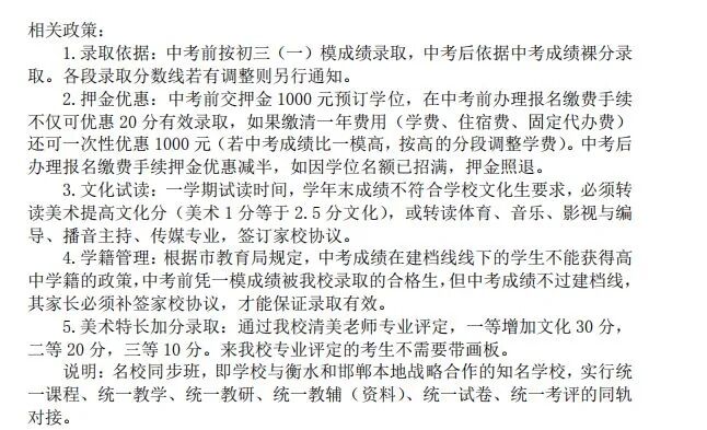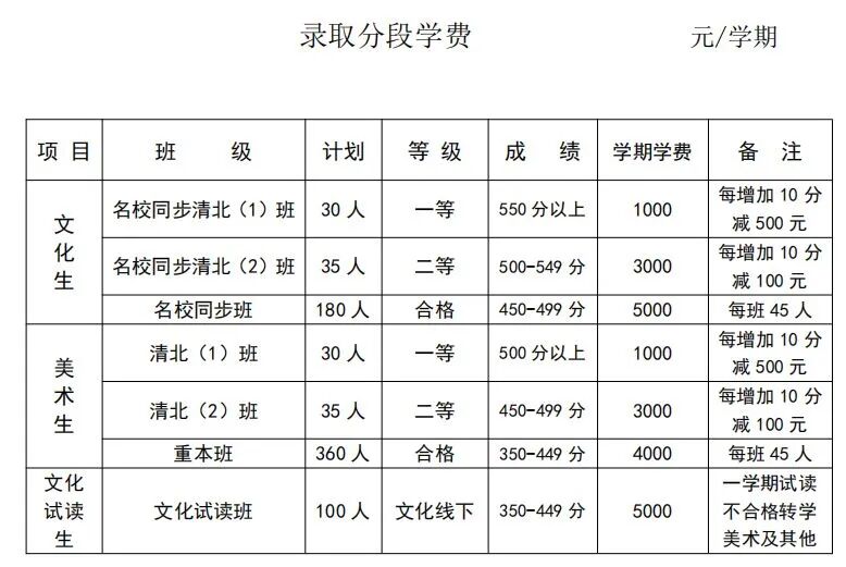 6.专业费:美术专业高一 5000 元,高二 8000 元,高三 17000 元,其他专业 (高二下学期以前)一次性缴 29800 元。