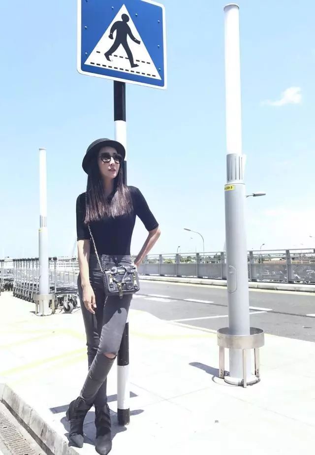 杜若溪整个体格其实是很显小,尤其这次的穿搭, 这几次简穿着,看起来还是挺不错的。头上一款檐帽,是整个的穿搭的亮点,搭配得当,在加上这副时尚的墨镜。
