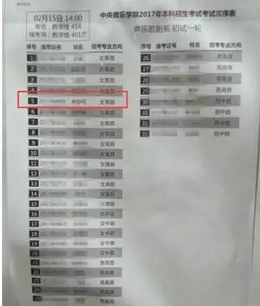近日,中央音乐学院艺考复试名单曝光,林妙可曾参加声乐歌剧系的初试,报考专业方向女高音,榜单未见其名字。根据复试名单显示,声乐歌剧系女高音专业复试是在2月19日进行,16人中并无林妙可,声乐歌剧系专业复试综合表演素质考查是2月21日进行,男高音、男中音、女高音、女中音共计29人,女高音部分与19日复试名单一致,其中也并无林妙可,证实林妙可落榜。