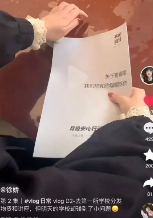 虽然拍戏和学业都很忙碌,但只要一有时间,徐娇就会积极参加女性公益活动,还到农村学校科普青春期和月经问题。