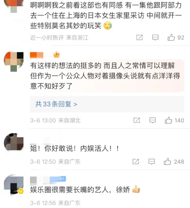 很快,一石激起千层浪,很多网友纷纷表示支持徐娇,还说娱乐圈很需要她这样“长嘴”“敢说”的艺人。