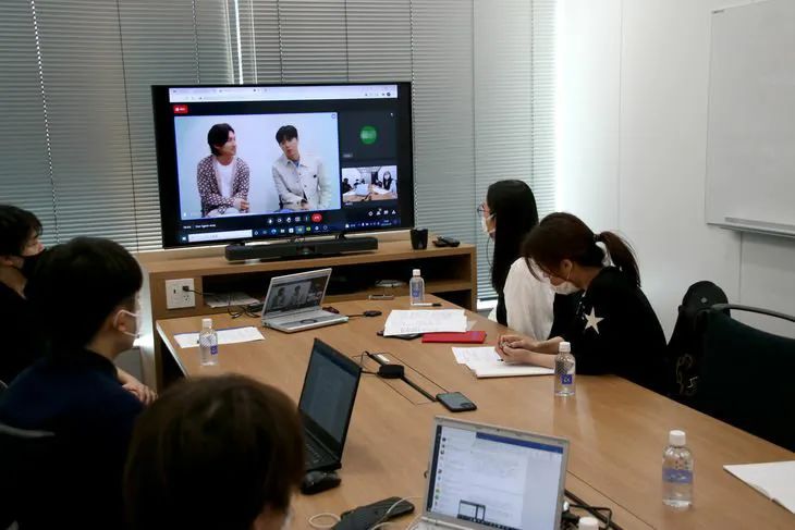 是线上采访开始前于首尔摄影棚拍摄的。
