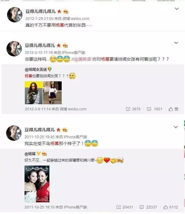 以上的黑点小编都能理解,But!我不懂,我真的不懂,豆得儿曾经两年坚持不懈黑杨幂(对,就是前两天刚拿下雅诗兰黛亚太区代言人的那位),硬把自己熬成杨幂的“著名黑粉”到底是为什么啊为什么??