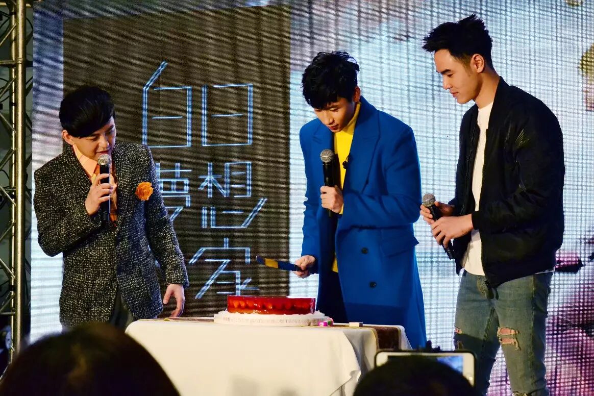 今天下午,魏晨携全新MINI专辑《白日梦想家》在台湾举办发片记者会。记者会现场,魏晨以《白日梦想家》MV中的造型帅气现身,被赞颜值高引闪光灯无数。金马影帝阮经天更是意外现身助阵,不仅为魏晨卖力宣传新专,还一并送上生日蛋糕为魏晨庆生!