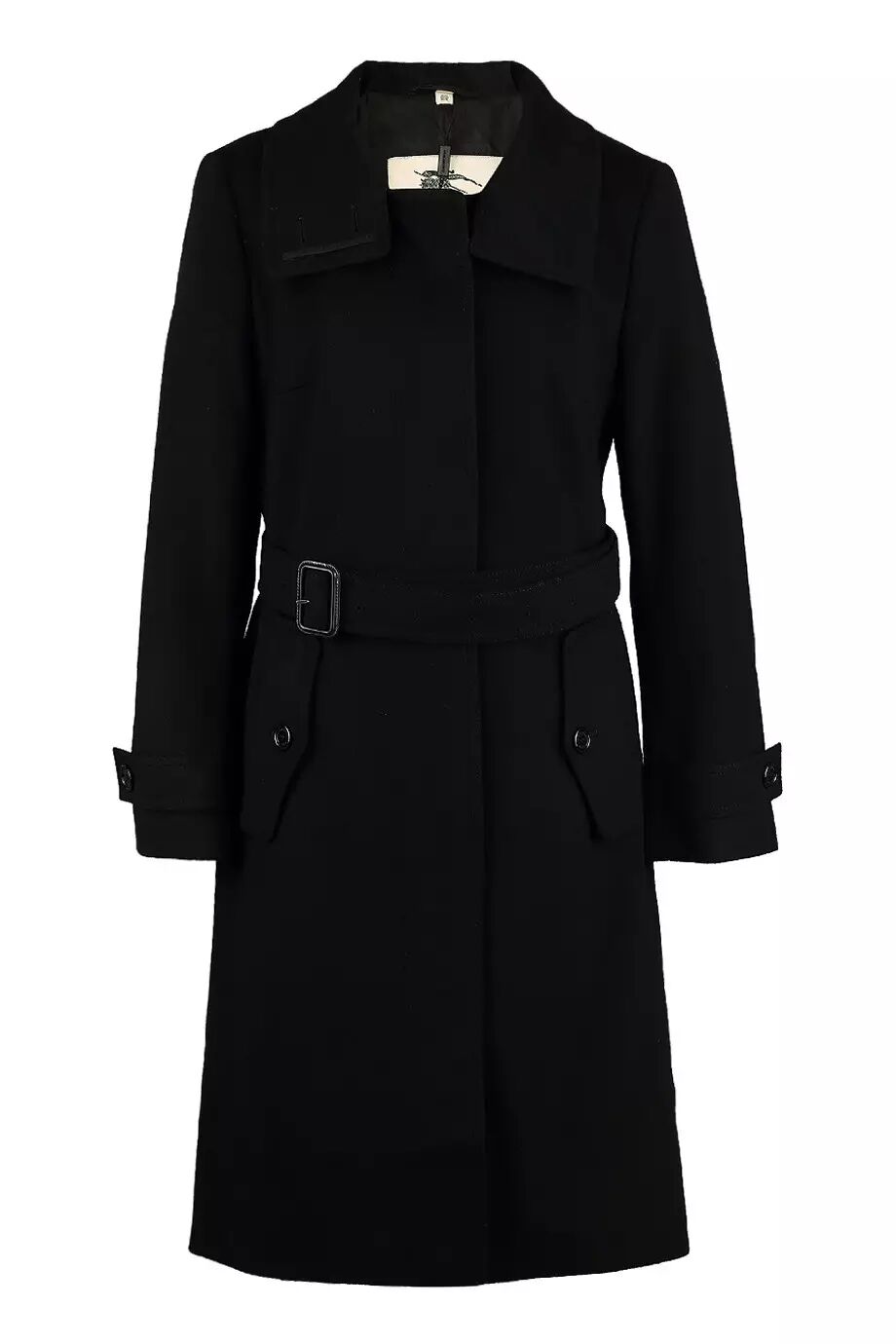 Burberry巴宝莉黑色羊毛混纺London系列女士收腰长款大衣