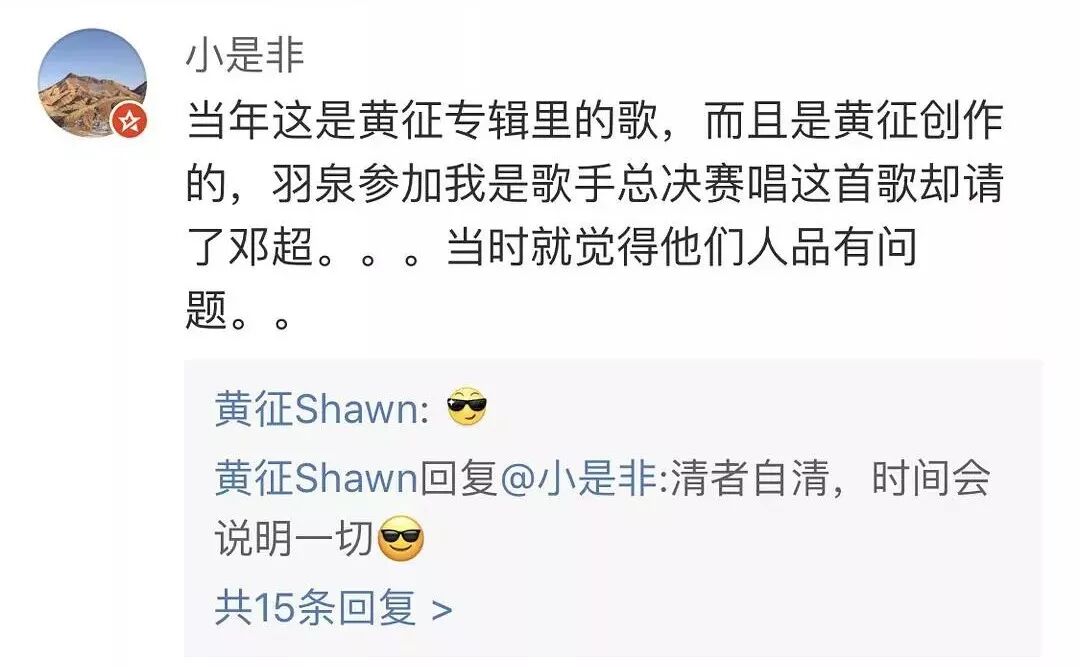 黄征在评论区留言“时间会说明一切”,貌似就是在暗指羽泉的人品。