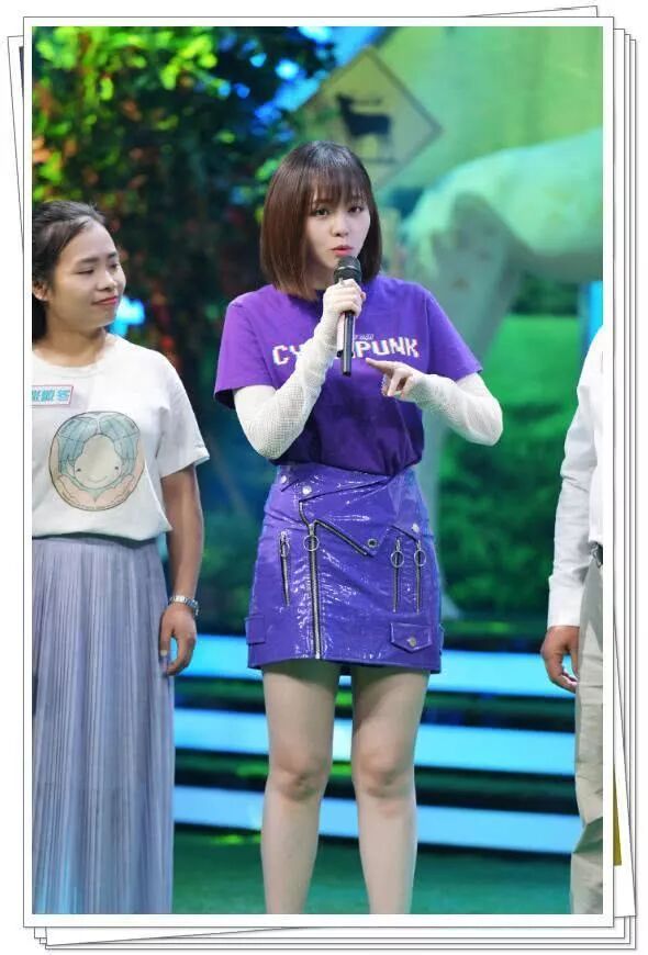 张靓丽出席活动时身穿紫色的活力T恤,搭配上紫色的包臀裙让她的皮肤看起来更加的白皙,搭配上一字带的高跟鞋可以非常好的打造出大长腿,修饰腿部状态。