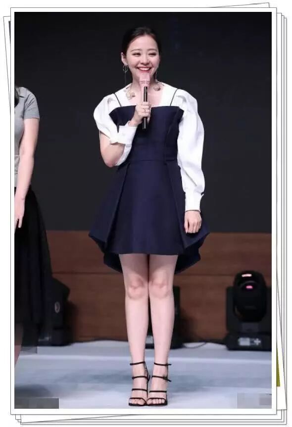 黑白色的撞色拼接款裙子看起来非常干练,不过蓬松的袖口设计让张靓颖看起来有点壮啊,还有腿部的形态看起来有点粗,看来张靓颖的减肥大业还需要继续努力啊!