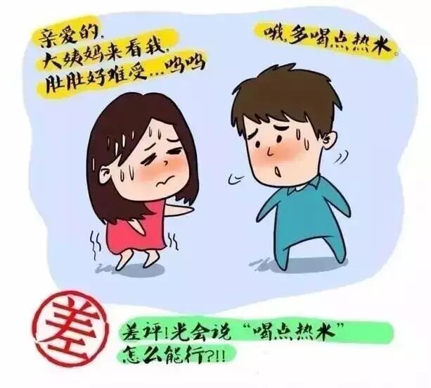 “亲爱的,人家大姨妈来啦,肚子痛的啦~”“摸摸听话,多喝热水。”