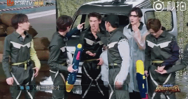 水枪游戏中,黄明昊被滋的满脸都是水,贴心的豆浆爸爸看到了自然地替Justin抹去水珠↓