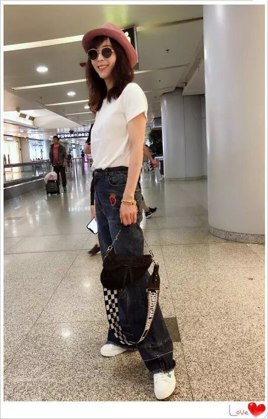 简单的白色短袖搭配牛仔阔腿裤,让张静初的气场两米八呀,白色很适合她,看起十分的干净。