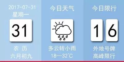 周一(7月31日)多云转小雨,18℃-32℃;