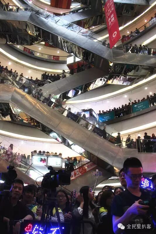 这商场每层的人真是站的满满当当的,连电梯上都不放过!