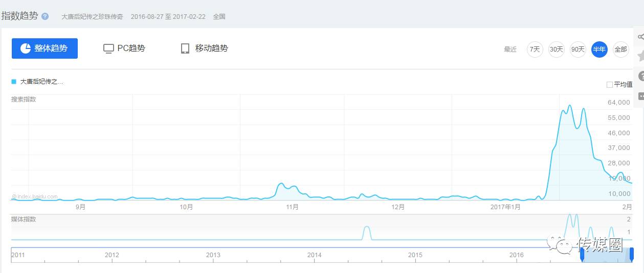*《大唐荣耀》IP原著《大唐后妃传之珍珠传奇》半年内百度指数趋势