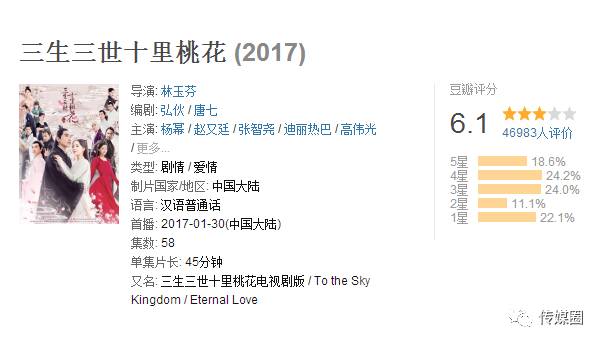 等等这部剧的衍生话题轻松就能霸居热搜。即便背负了“抄袭门”的骂名,即便《三生三世》仅有6.1分的电视剧评分,却还是在互联网和资本的催生下,简单粗暴地炒出了自己的经济效应。