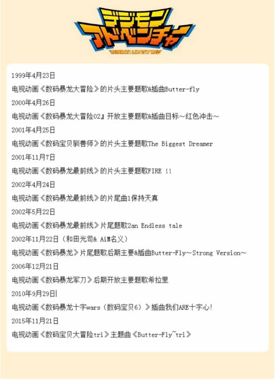感谢从数码宝贝开始,您所传达的沢山的歌。