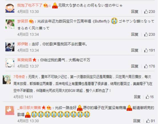 ▽昨天,日媒发布讣告,数码宝贝主题曲的演唱者和田光司因喉癌于4月3日早上去世。享年42岁。