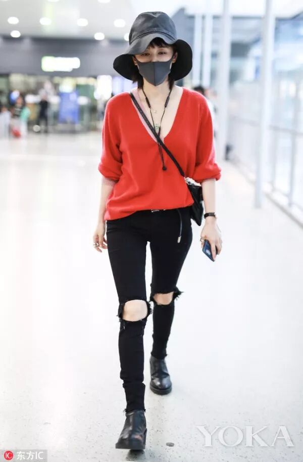 V领毛衣或许会显得胸前空空的,那么可以选择佩戴项链来加以点缀,Angelababy身穿Dior红色毛衣搭配黑色薄纱半裙,脚踩高跟凉鞋,优雅又甜美,半裙上的红色小波点非常灵动,还有高跟鞋上的红心设计很动人了!