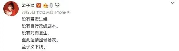“温情”下线的时候,孟子义发了条言简意赅的微博: