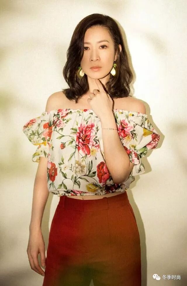这套淑女风的穿搭也很适合佘诗曼的身材,看看她身上穿着一件印花的雪纺衫,散发着复古的气息,搭配一条红色的长裤,休闲的款式,穿起来更舒适,耳朵上还戴着闪亮的耳坠,女神看起来何止有气色,简直是光彩照人呀!
