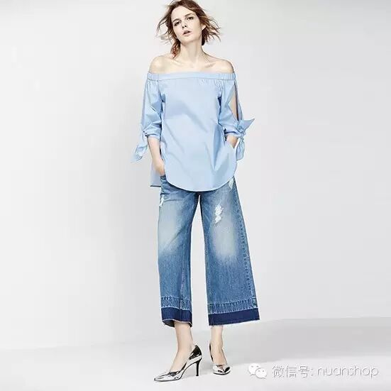 一字肩棉衬衫: