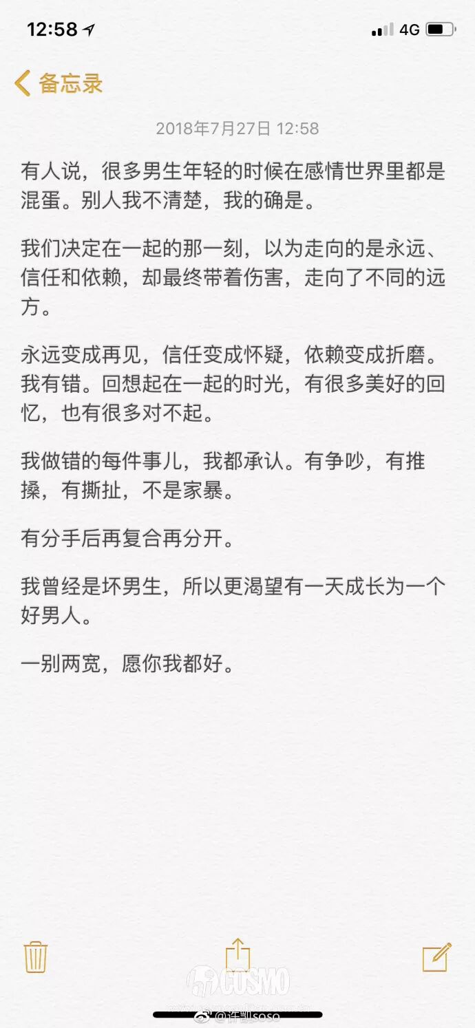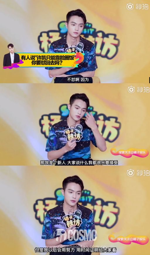 但他也有一种心态,就“躺平任嘲,以待来日”。发手机备忘录承认以前渣过,以后会做一个成熟稳重的男人。记者提问,大家说许凯就是“靠脸”,他说我是个新人,大家说什么我都乐意接受,以后努力用时间证明给大家看。