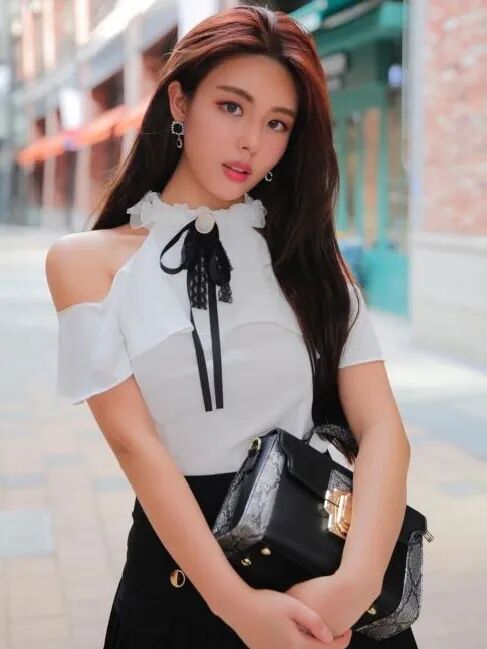她的风格可塑性很强,青春甜美的学院风和女团风都能完美消化。因为会穿+身材比例好,看上去很显高。