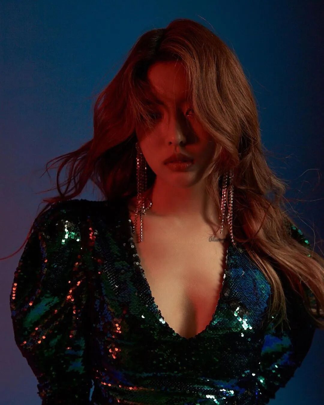 她的棚拍硬照更上镜,有一种高级不艳俗的美感。可以是冷艳魅惑的气场女王;