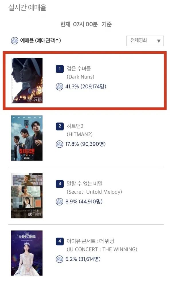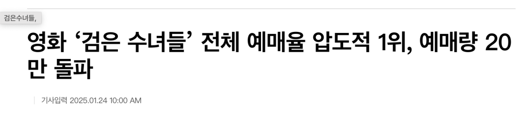 在开拍前,这部电影就被说是金伦奭、姜栋元经典作品《黑祭司》的女版外传,又是宋慧乔时隔10年回归韩国电影圈的作品,预售可以说是压倒性的领先,比第二名翻倍…