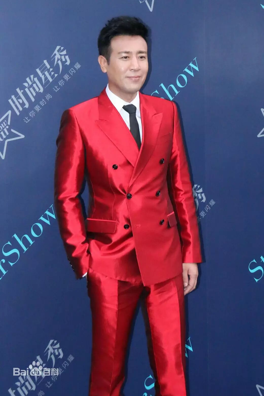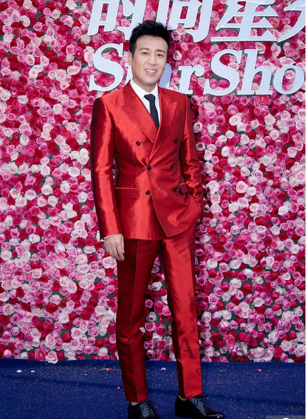 于和伟选择了黑色的领带与鞋子来搭配红色西装,很经典的配色!眼睛完全离不开他啊!