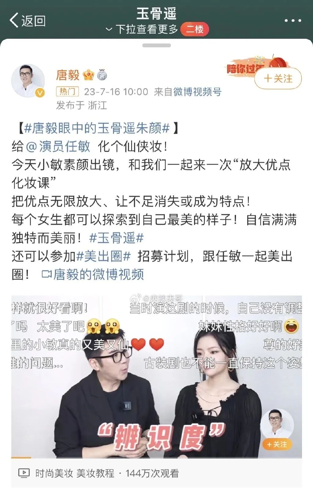 《玉骨遥》妆造不断惹争议,确实任敏这种不是美艳型,古装妆发和滤镜选不好则更加死亡。