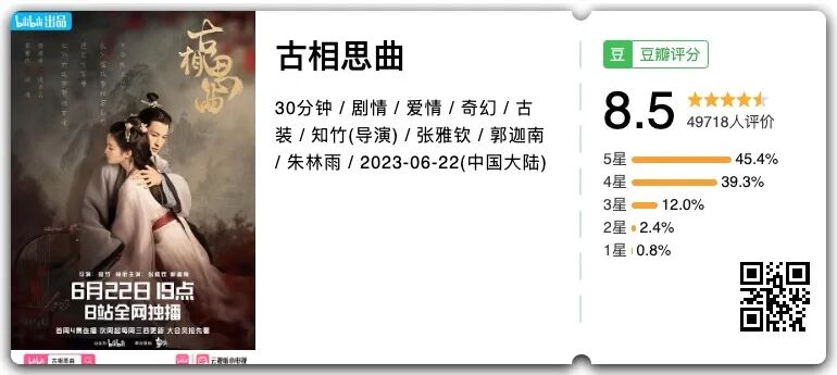 还有一个无流量小剧《古相思曲》赢得了口碑,把古代穿越玩出了花来,逆时间穿越奠定了一种充满遗憾的宿命感,算不得小爆,但豆瓣短评里看到了观众的真诚。