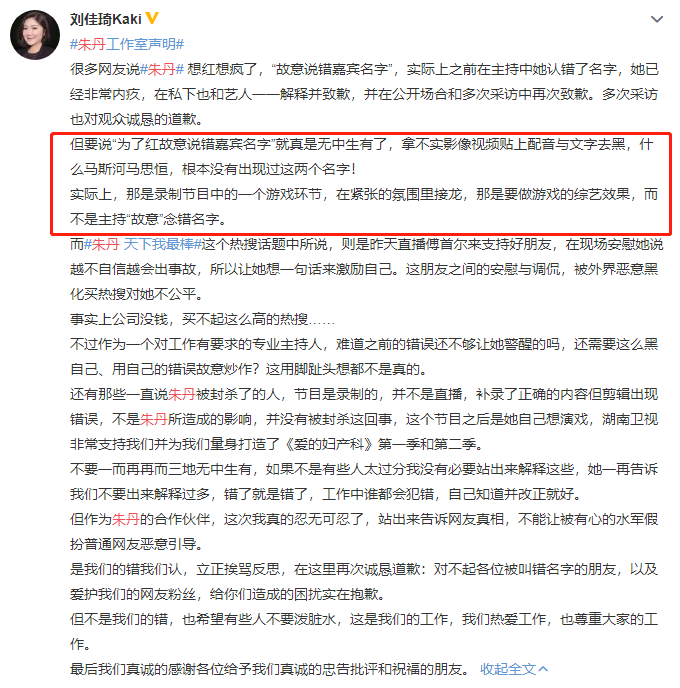 朱丹方的态度这次很刚:有错就立正挨骂反思,没做过的事情,坚决不背锅。