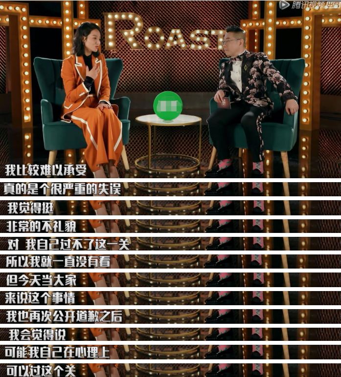 她满脸都是紧张,然而却看到了吐槽秀的有趣,成年人要赤裸直面自己错误的慌张。