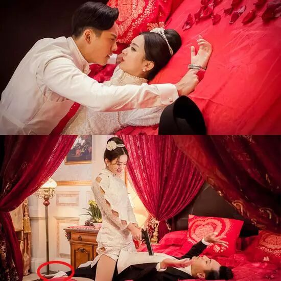 未播先火的盗墓题材电视剧《老九门》近日曝光了一组主演赵丽颖和陈伟霆的洞房夜剧照,我们看到剧照中两位主演大尺度的壁咚、床咚、椅咚统统上阵。赵丽颖更是一改往日萌蠢的清纯形象,大尺度秀出了美腿。只是赵丽颖身后那道白条是什么不明物体?!