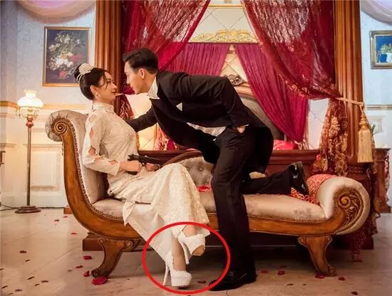 近日,由赵丽颖、陈伟霆主演的盗墓新剧《老九门》公布了一组两人甜腻腻的“洞房夜”剧照,两人在剧中壁咚、床咚、椅咚统统上阵,花式撩人。但是在如此香艳的画面中怎么总有个不明物体在妨碍视野?!仔 细看看才发现原来赵丽颖穿了双加厚防水台的驴蹄鞋......