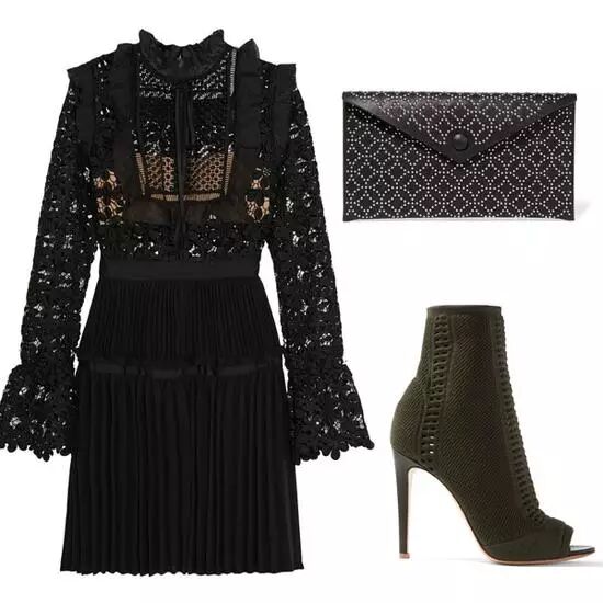 Self-Portrait 黑色蕾丝透视裙 3014元