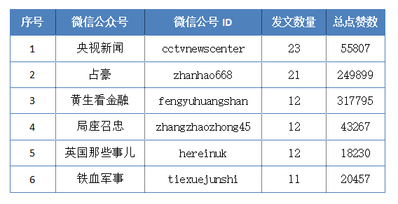 值得一提的是,微信公号“黄生看金融”12篇文章中有9篇入围点赞数TOP10,可谓独领风骚。其文章聚焦于特朗普的实时政策、动向,没有华丽的排版设计,有的是深入浅出的政局分析,没有过于偏激的观点和情绪,伴随一首歌曲花上几分钟就能轻松读完一篇精辟小文。